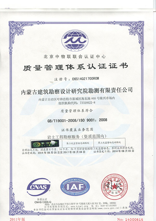 質量管理體系認證證書